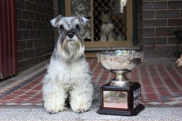 The Jasper Trophy for Excellence was created and donated in honour of Donnerkeil Doctor Feelgood (Jasper).He excelled in Obedience and Agility in the capable hands of his owners, Lyn and Geoff Jackson. The Club annually presents this award for such talented Miniature Schnauzers.