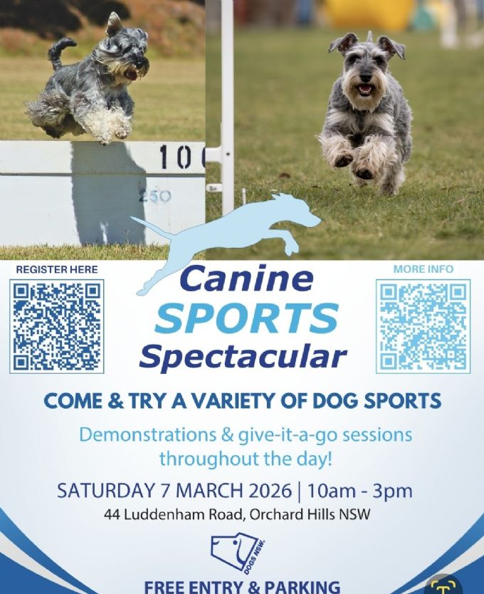 7 March - DOGS NSW Canine Sports Spectacular, Orchard Hills - The Schnauzer Club will be attending to showcase the versatility of the breeds